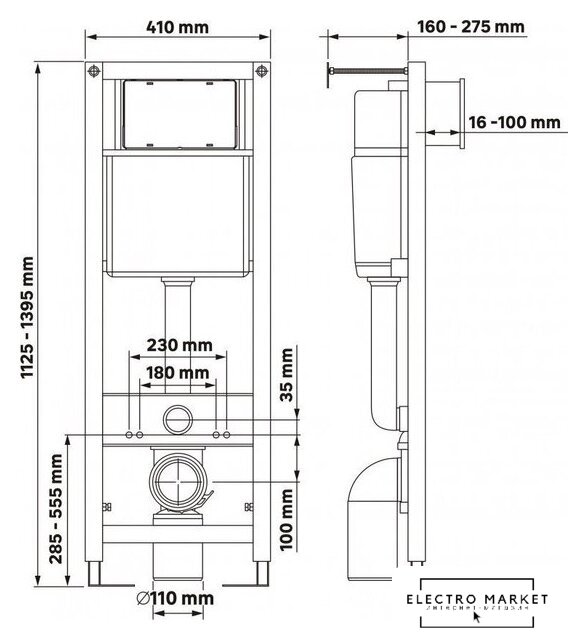 | Отверстия под инсталляцию | 180 мм |