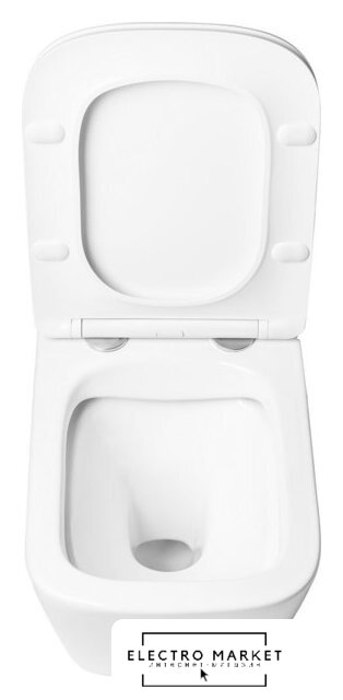 подвесной, без бачка, задний подвод воды, горизонтальный выпуск, двухрежимный слив, с сиденьем