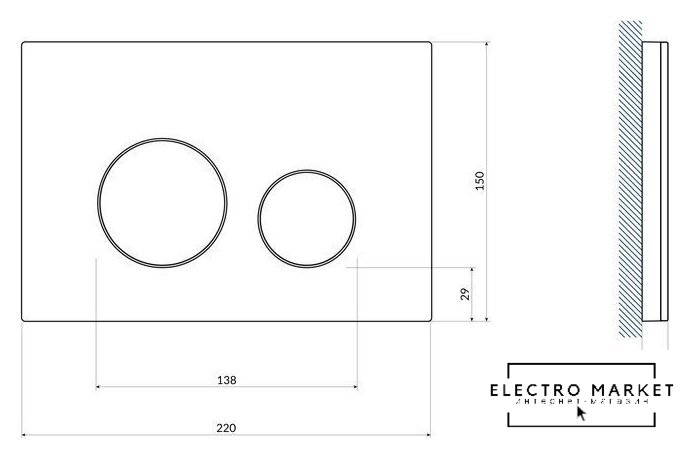 подвесной, без бачка, задний подвод воды, горизонтальный выпуск, двухрежимный слив, с сиденьем