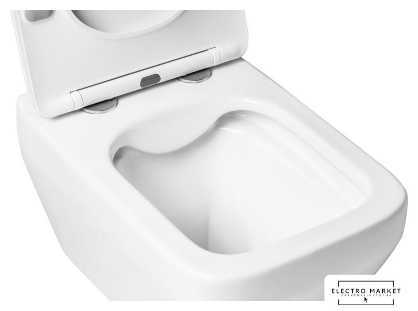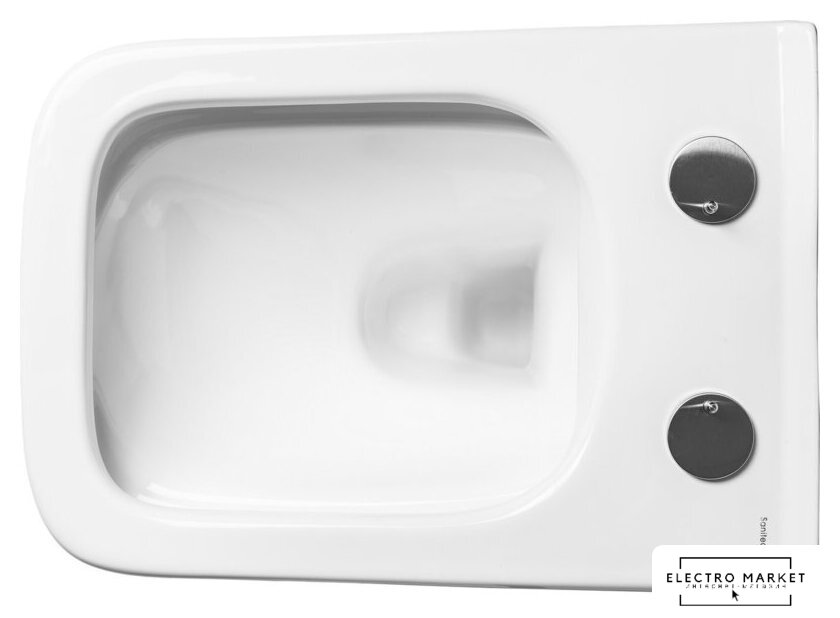 подвесной, без бачка, задний подвод воды, горизонтальный выпуск, двухрежимный слив, с сиденьем