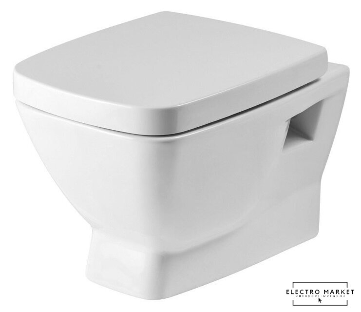 подвесной, конструкция: без бачка, задний подвод воды, горизонтальный выпуск, двухрежимный слив, с сиденьем, безободковый