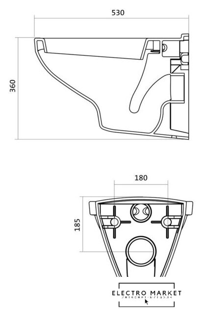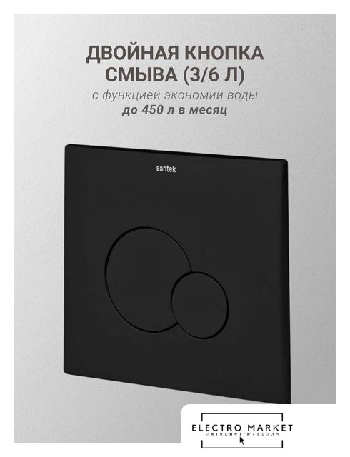 подвесной (с биде), конструкция: без бачка, задний подвод воды, горизонтальный выпуск, двухрежимный слив, с сиденьем, безободковый