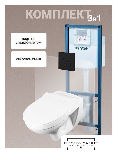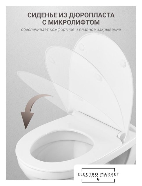 подвесной, конструкция: без бачка, задний подвод воды, горизонтальный выпуск, двухрежимный слив, с сиденьем, безободковый