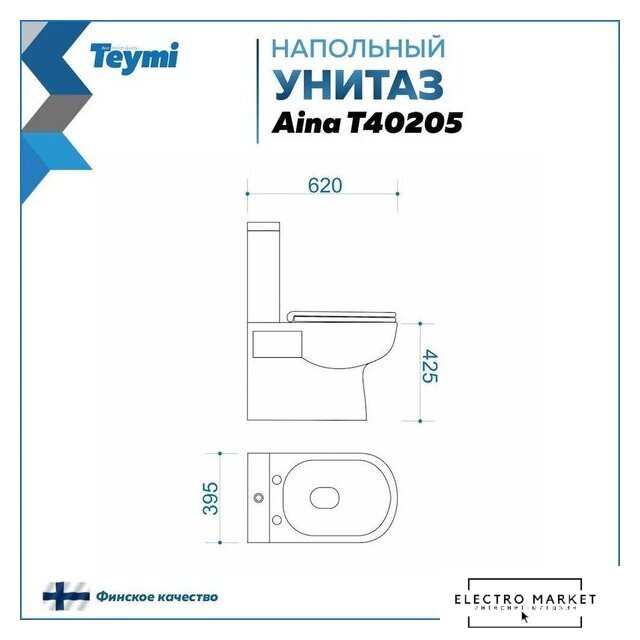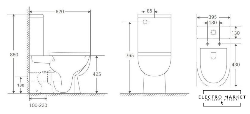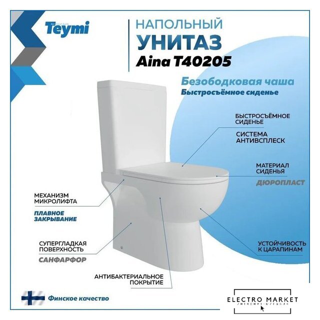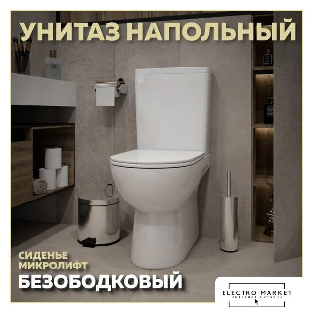 напольный, компакт, нижний подвод воды, горизонтальный выпуск, с сиденьем