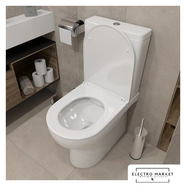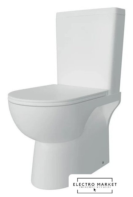 напольный, конструкция: компакт, нижний подвод воды, универсальный выпуск, двухрежимный слив, с сиденьем, безободковый