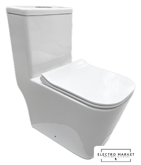 напольный, конструкция: компакт, задний подвод воды, горизонтальный выпуск, двухрежимный слив, с сиденьем, безободковый