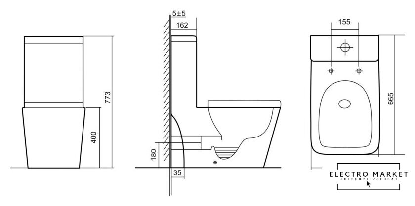 напольный, компакт, нижний подвод воды, универсальный выпуск, двухрежимный слив, с сиденьем