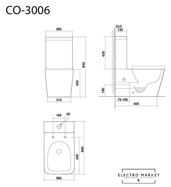 напольный, компакт, нижний подвод воды, универсальный выпуск, двухрежимный слив, с сиденьем
