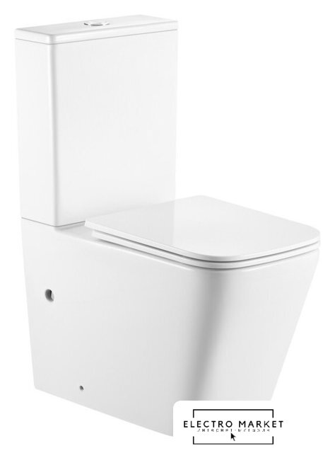 напольный, конструкция: компакт, нижний подвод воды, универсальный выпуск, двухрежимный слив, с сиденьем, безободковый