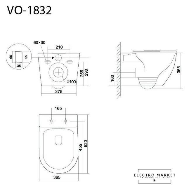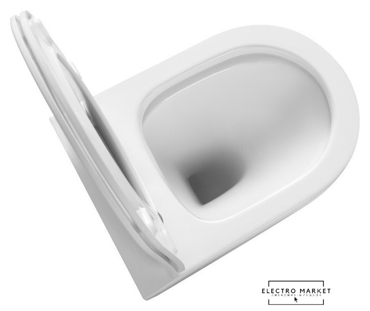 подвесной, конструкция: компакт, задний подвод воды, горизонтальный выпуск, двухрежимный слив, с сиденьем, безободковый