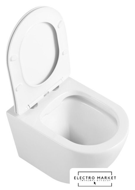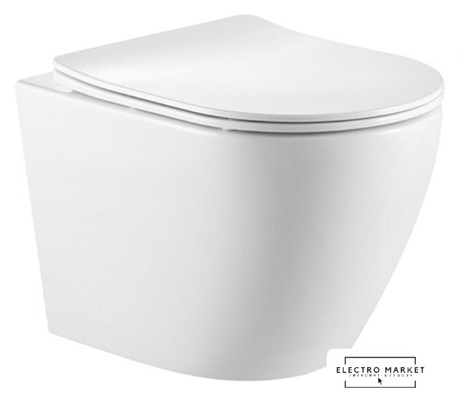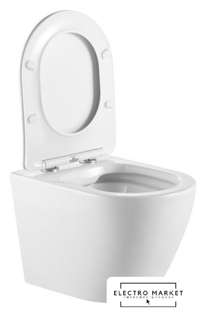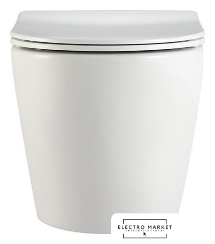 подвесной, конструкция: без бачка, задний подвод воды, горизонтальный выпуск, двухрежимный слив, с сиденьем, безободковый