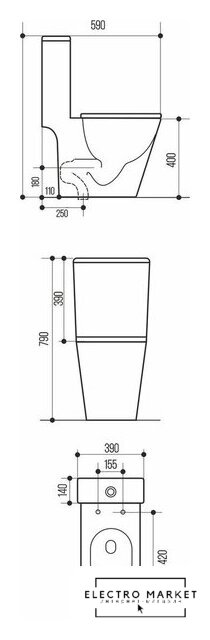 напольный, компакт, нижний подвод воды, универсальный выпуск, двухрежимный слив, с сиденьем
