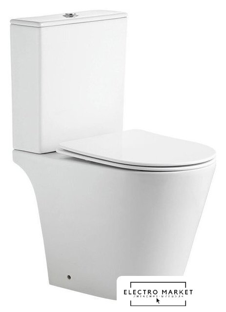 напольный, конструкция: компакт, нижний подвод воды, универсальный выпуск, двухрежимный слив, с сиденьем, безободковый
