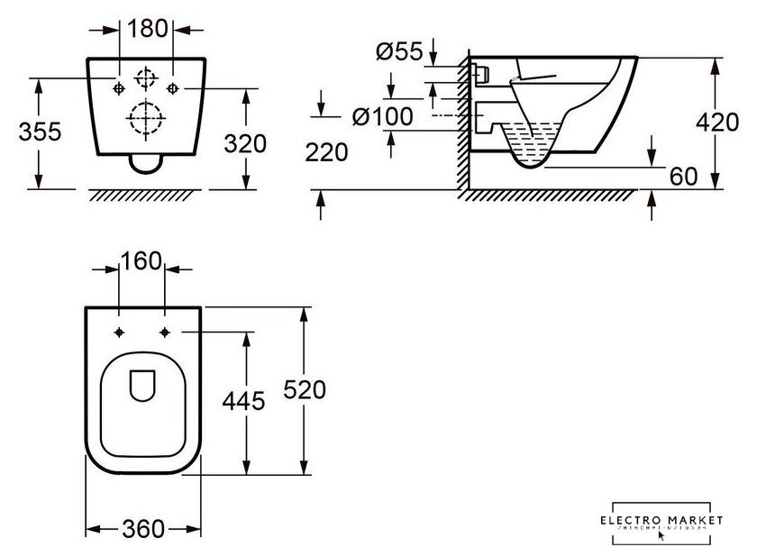 подвесной, задний подвод воды, с сиденьем, безободковый