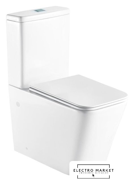 напольный, конструкция: компакт, нижний подвод воды, универсальный выпуск, двухрежимный слив, с сиденьем, безободковый
