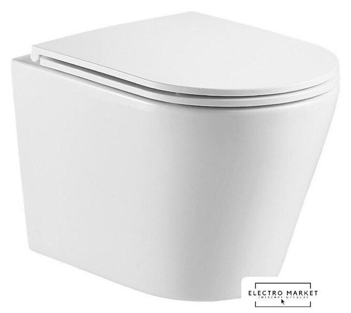 подвесной, конструкция: без бачка, задний подвод воды, горизонтальный выпуск, однорежимный слив, с сиденьем, безободковый