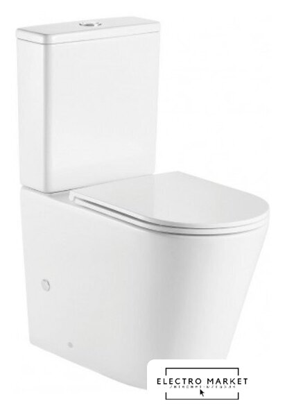 напольный, конструкция: компакт, задний подвод воды, горизонтальный выпуск, с сиденьем, безободковый