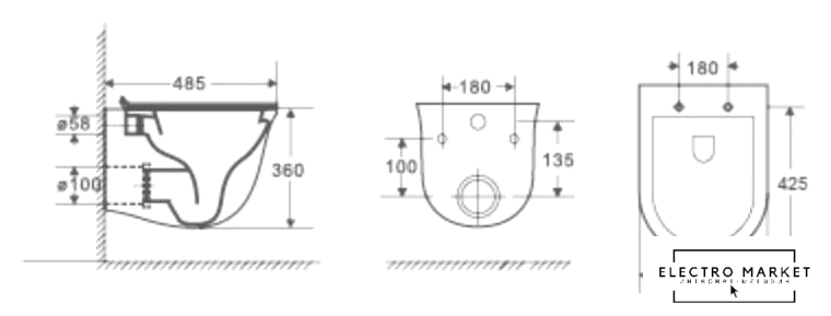 подвесной, конструкция: без бачка, задний подвод воды, горизонтальный выпуск, двухрежимный слив, с сиденьем