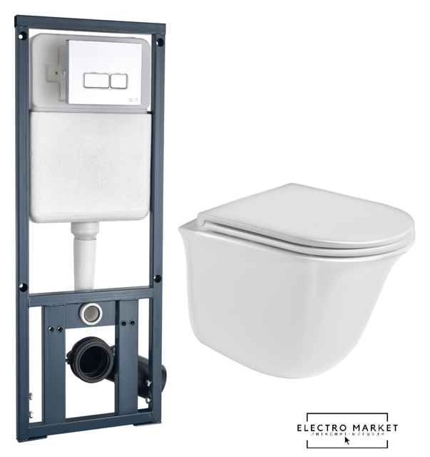 подвесной, конструкция: компакт, задний подвод воды, горизонтальный выпуск, двухрежимный слив, с сиденьем, безободковый