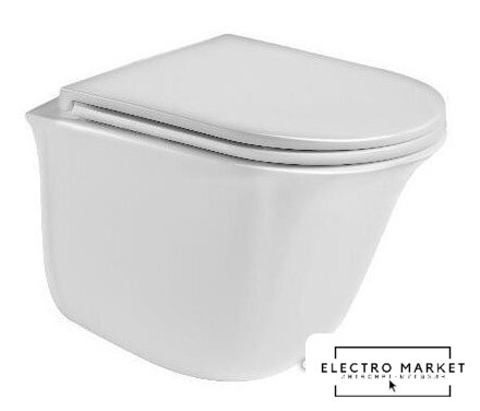 подвесной, конструкция: без бачка, задний подвод воды, горизонтальный выпуск, двухрежимный слив, с сиденьем, безободковый