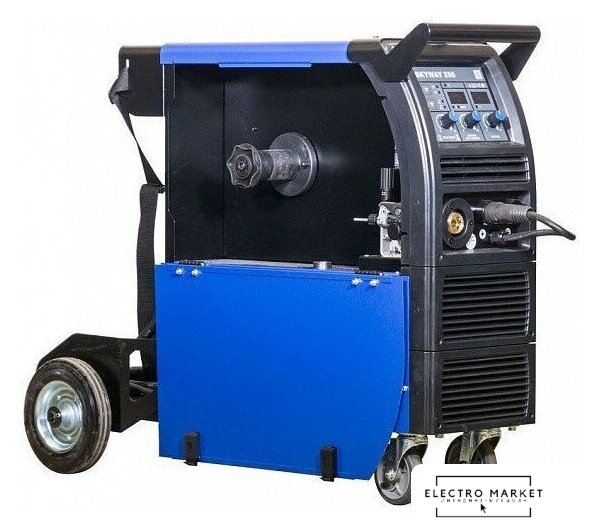 ручная дуговая сварка (MMA)/полуавтоматическая сварка (MIG MAG), 380 В, сварочный ток: 50–300 А, диаметр электрода: 0.8–1.2 мм, 31.5 кг