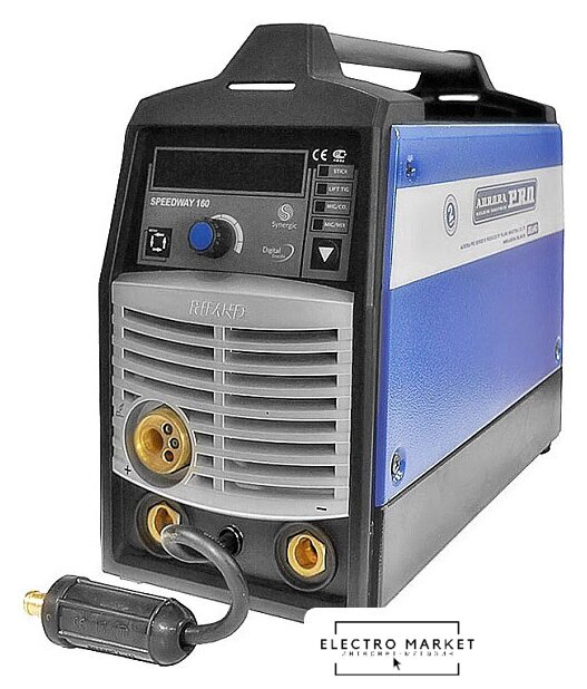 ручная дуговая сварка (MMA)/полуавтоматическая сварка (MIG MAG), 220 В, сварочный ток: 30–160 А, диаметр электрода: 1.6–4 мм, 11.9 кг