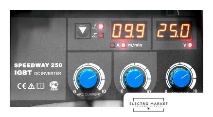 ручная дуговая сварка (MMA)/полуавтоматическая сварка (MIG MAG)/аргонодуговая сварка (TIG), входное напряжение 230 В, сварочный ток: 10–250 А, диаметр электрода: 1.6–5 мм, 33 кг