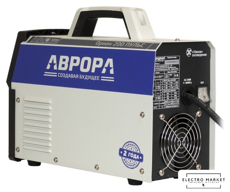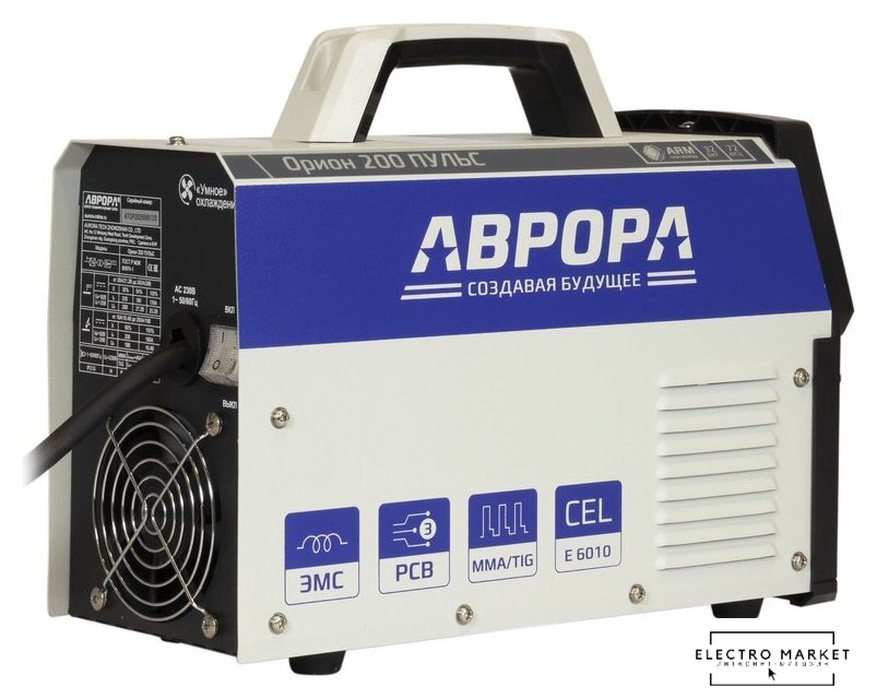 ручная дуговая сварка (MMA)/полуавтоматическая сварка (MIG MAG FCAW)/аргонодуговая сварка (TIG), входное напряжение 220 В, сварочный ток: 20–200 А, диаметр электрода: 1.6–4 мм, 12 кг