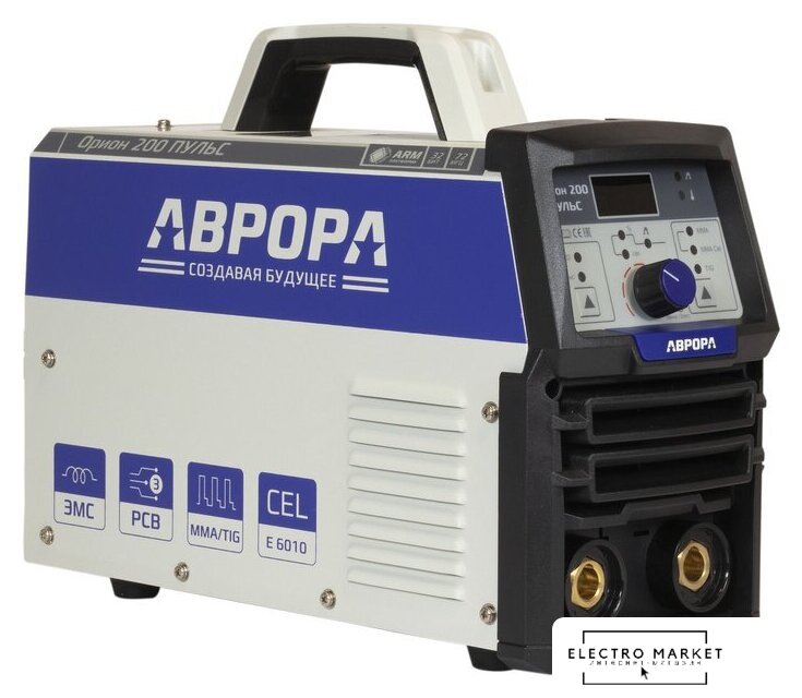 ручная дуговая сварка (MMA)/полуавтоматическая сварка (MIG MAG), входное напряжение 220 В, сварочный ток: 20–200 А, диаметр электрода: 2.5–5 мм, 13.9 кг
