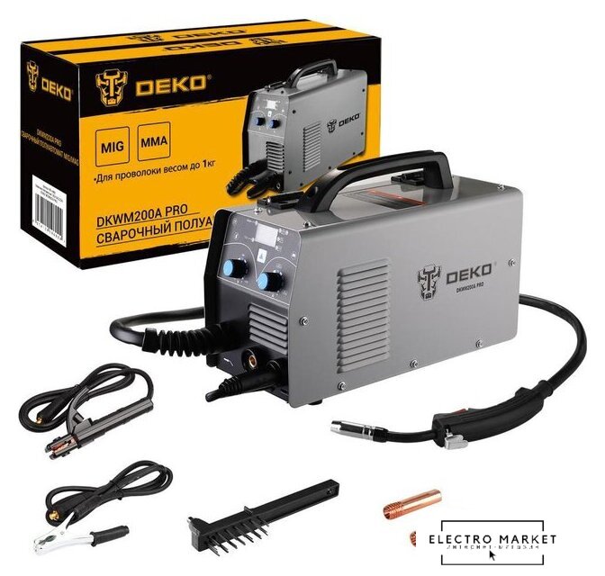 Комплект поставки | - Сварочный полуавтомат с силовым кабелем - 1 шт.- Кабель ССА с электрододержателем - 1 шт.- Кабель ССА с зажимом заземления - 1 шт.- Горелка - 1 шт.- Зачистная щетка - 1 шт.- Токосъемный наконечник - 2 шт.- Руководство по эксплуатации- Коробка |