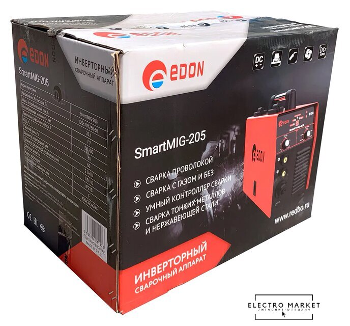 ручная дуговая сварка (MMA)/полуавтоматическая сварка (MIG MAG)/аргонодуговая сварка (TIG), 220 В, сварочный ток: 20–200 А, диаметр электрода: 1.6–4 мм, 6 кг