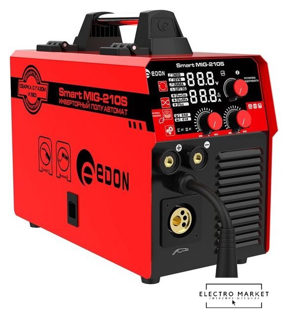 | Комплект поставки | - сварочный аппарат - 1 шт.;- сварочная горелка с евро разъемом, длина 2,9 м. - 1 шт.;- комплект ЗИП для полуавтоматической горелки - 1 комплект;- кабель-масса с зажимом, сечение 12 мм2, длина 1,9 м., типоразмер силового штекера 16-25 - 1 шт.;- электрододержатель с силовым кабелем, сечение 12 мм2, длина 2,9 м., типоразмер силового штекера 16-25 - 1 шт.;- проволока порошковая 1,0 мм., 0,5 кг. - 1 шт.;- проволока стальная омедненная 0,8 мм., 0,5 кг. - 1 шт.;- дополнительный подающий ролик 0,8-1,0 K (зуб.) - 1 шт.;- щетка по металлу - 1 шт.;- газовый шланг - 1 шт.;- хомут металлический - 2 шт.;- перчатки для сварки - 1 комплект;- руководство по эксплуатации - 1 шт.;- упаковка - 1 шт. |
