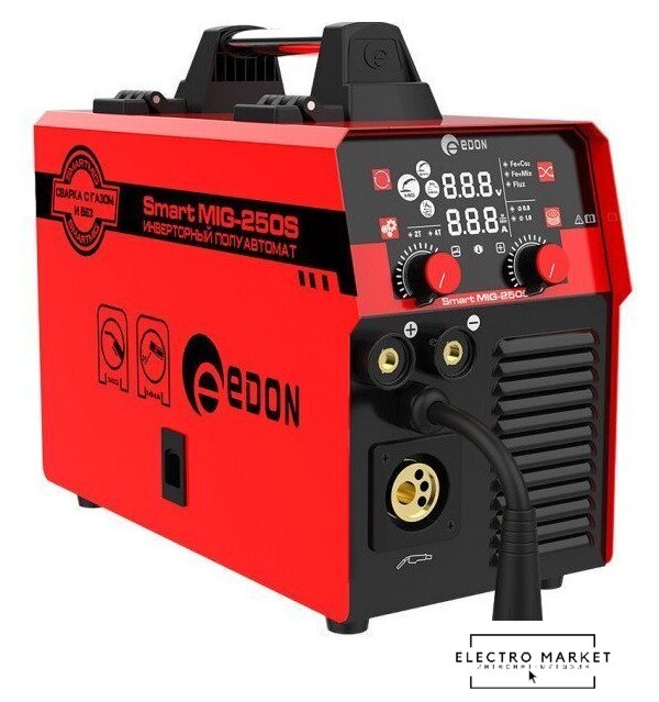 ручная дуговая сварка (MMA)/полуавтоматическая сварка (MIG MAG FCAW), входное напряжение 220 В, сварочный ток: 20–210 А, диаметр электрода: 2–4 мм