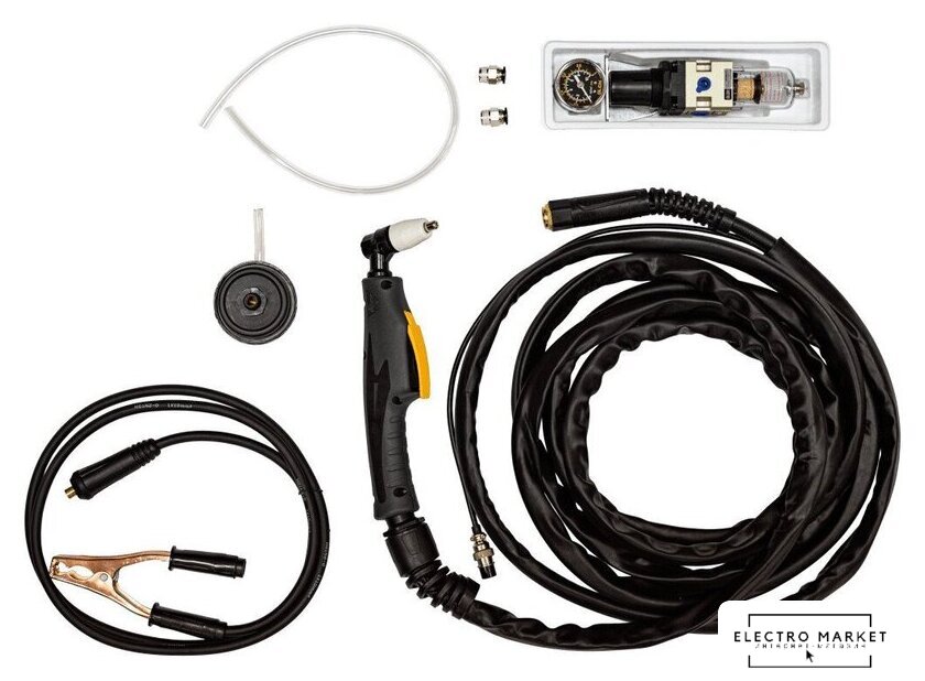 | Комплект поставки | • аппарат воздушно−плазменной резки, • резак с руковом, • кабель заземления, • воздушный фильтр−регулятор с манометром, • наконечник электрода (2 шт), • газовая трубка, • руководство по эксплуатации, • гарантийный талон |
