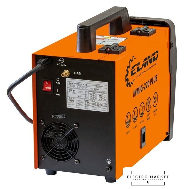 ручная дуговая сварка (MMA)/полуавтоматическая сварка (MIG MAG FCAW)/аргонодуговая сварка (TIG), входное напряжение 220 В, сварочный ток: 10–200 А, диаметр электрода: 1.6–4 мм, 17.5 кг