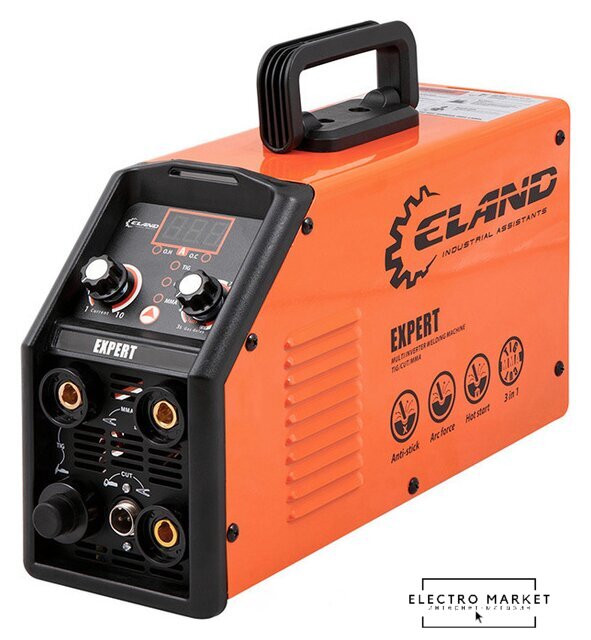 ручная дуговая сварка (MMA)/полуавтоматическая сварка (MIG MAG)/аргонодуговая сварка (TIG), 220 В, сварочный ток: 50–180 А, 8 кг