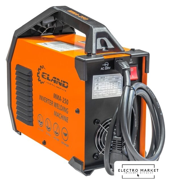 ручная дуговая сварка (MMA), 220 В, сварочный ток: 10–220 А, диаметр электрода: 0–5 мм, 4.5 кг