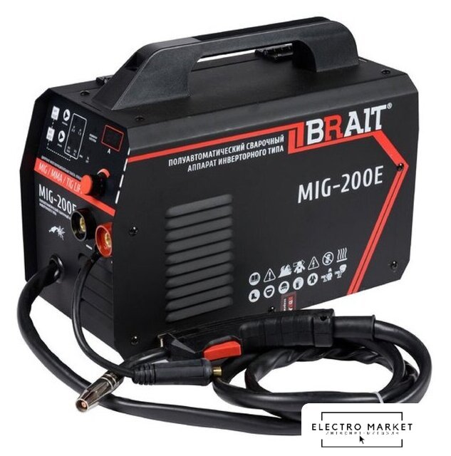 ручная дуговая сварка (MMA), 220 В, сварочный ток: 20–200 А, диаметр электрода: 1.6–4 мм, 3.8 кг