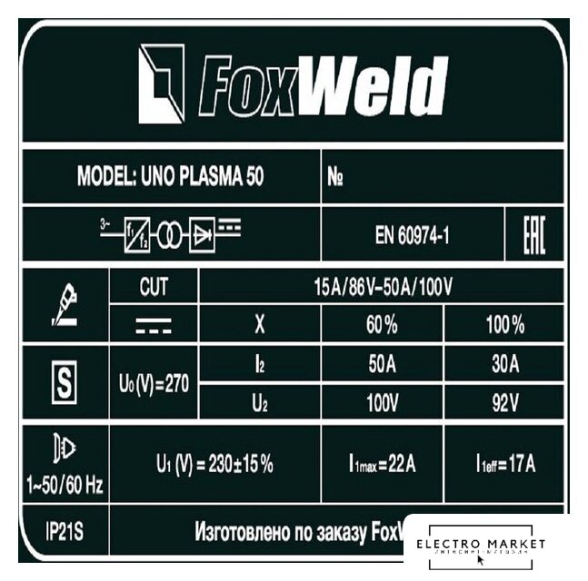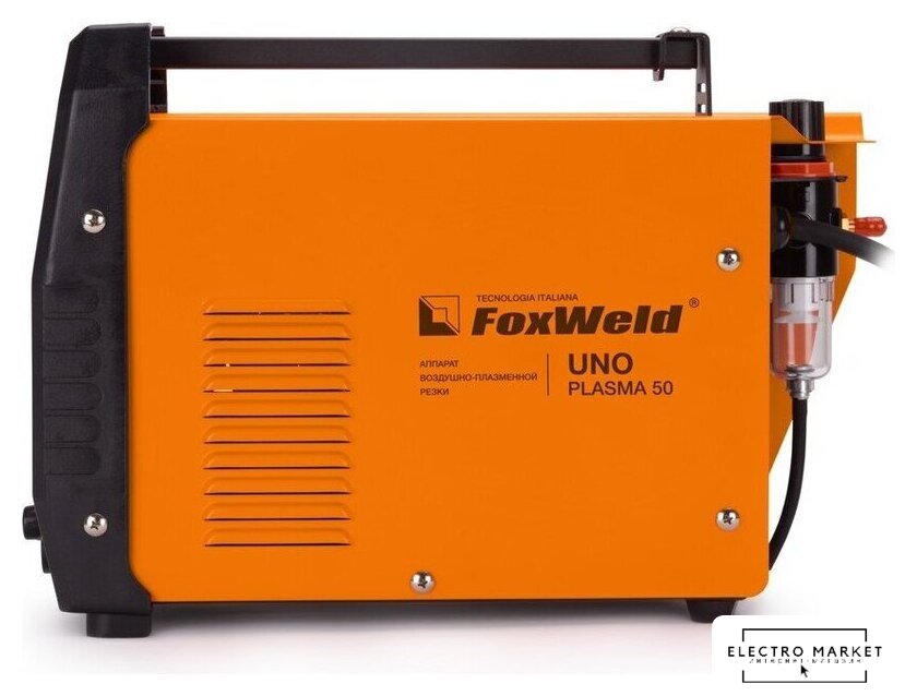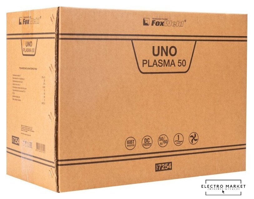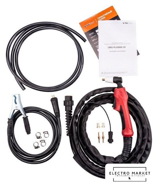 | Комплект поставки | • Аппарат плазменной резки UNO PLASMA 50 – 1 шт.;• Плазмотрон PT-31, 3 м. – 1 шт.;• Зажим для заземления с кабелем, 2 м. – 1 компл.;• Рукав для подачи газа, 2 м. – 1 шт.;• Узел подготовки воздуха (редуктор-осушитель) – 1 шт.;• Комплект ЗИП – 1 шт.;• Инструкция – 1 шт.;• Гарантийный талон – 1 шт. |