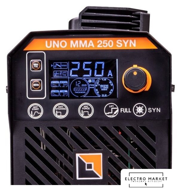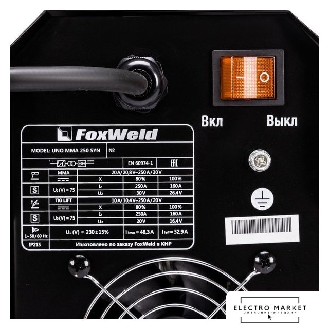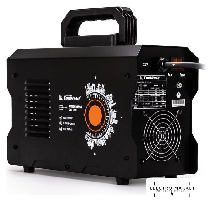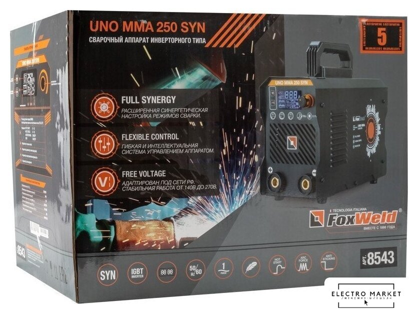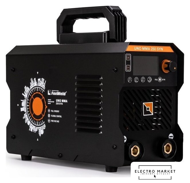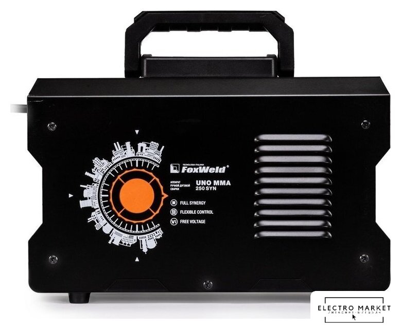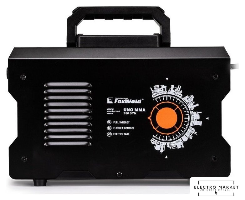 Комплект поставки | • Сварочный аппарат FOXWELD UNO MMA 250 SYN – 1 шт.;• Электрододержатель 300 А, 3 м – 1 шт.;• Зажим заземления 300 А, 3 м – 1 шт.;• Ремень для переноски – 1 шт.;• Инструкция – 1 шт.;• Гарантийный талон – 1 шт. |