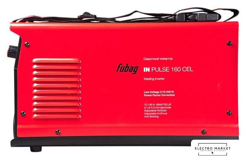 ручная дуговая сварка (MMA)/аргонодуговая сварка (TIG), входное напряжение 140–230 В, сварочный ток: 10–200 А, диаметр электрода: 1.6–5 мм, 6.7 кг