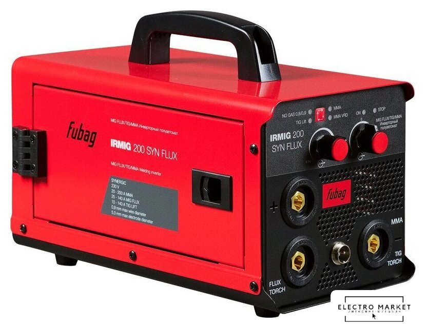 ручная дуговая сварка (MMA)/полуавтоматическая сварка (MIG MAG)/аргонодуговая сварка (TIG), 220 В, сварочный ток: 20–200 А, диаметр электрода: 1.6–4 мм, 6 кг