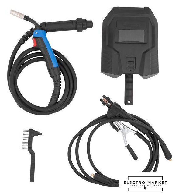 Комплект поставки | - сварочный щиток;- молоток-щетка;- горелка АК15 с евроразъемом 3м;- кабель заземления 1.2м;- кабель с держателем электрода 1.8м;- 2 наконечника для сопла горелки (0.6 и 0.8 мм). |