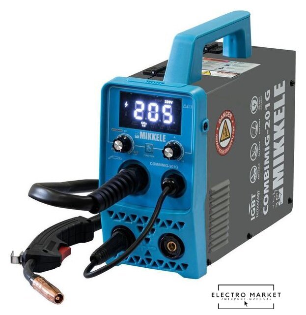ручная дуговая сварка (MMA)/полуавтоматическая сварка (MIG MAG FCAW), входное напряжение 160–220 В, сварочный ток: 20–200 А, диаметр электрода: 1.6–4 мм, 7.8 кг