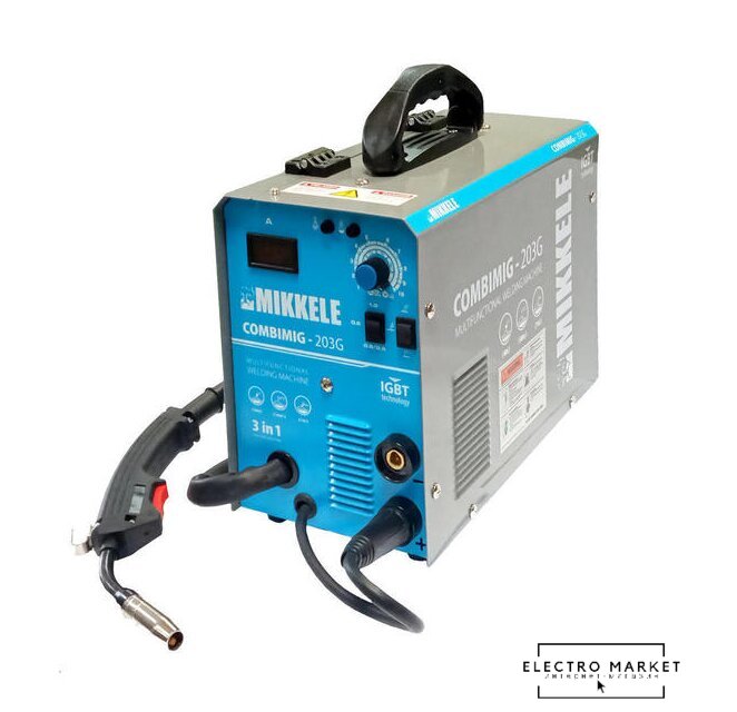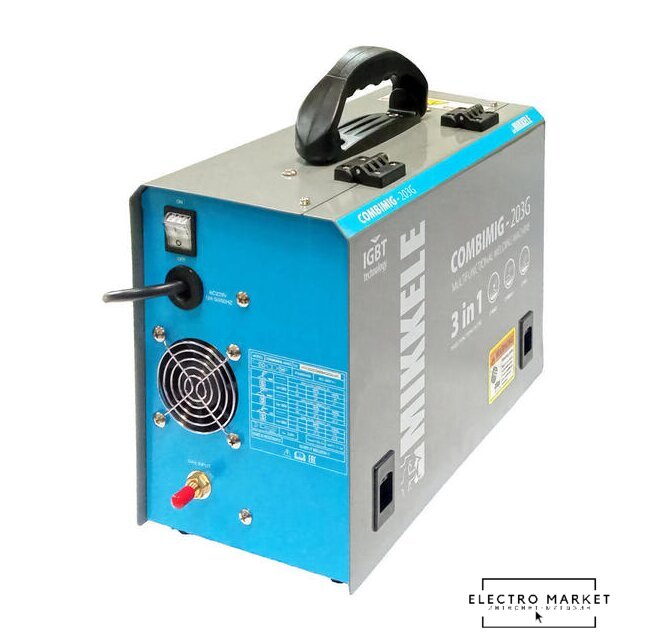 ручная дуговая сварка (MMA)/полуавтоматическая сварка (MIG MAG)/аргонодуговая сварка (TIG), 220 В, сварочный ток: 20–180 А, диаметр электрода: 2–4 мм, 9.5 кг