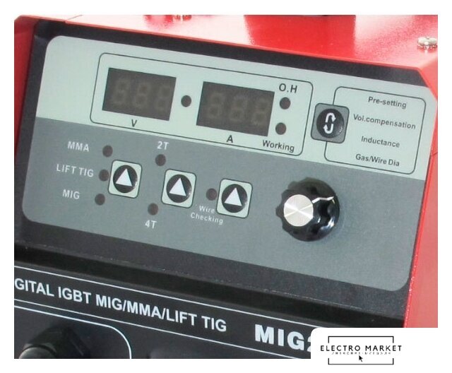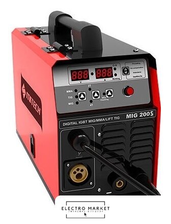 ручная дуговая сварка (MMA)/полуавтоматическая сварка (MIG MAG)/аргонодуговая сварка (TIG), входное напряжение 220 В, сварочный ток: 20–180 А, диаметр электрода: 2–4 мм, 12.3 кг