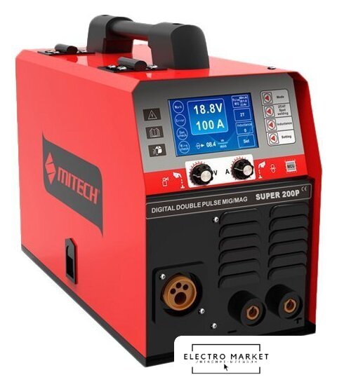 ручная дуговая сварка (MMA)/полуавтоматическая сварка (MIG MAG), 380 В, сварочный ток: 40–250 А, диаметр электрода: 0.8–1 мм, 23 кг