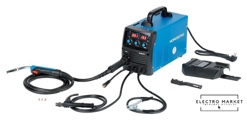 ручная дуговая сварка (MMA)/полуавтоматическая сварка (MIG MAG), 220 В, сварочный ток: 30–160 А, диаметр электрода: 1.6–4 мм, 11.9 кг