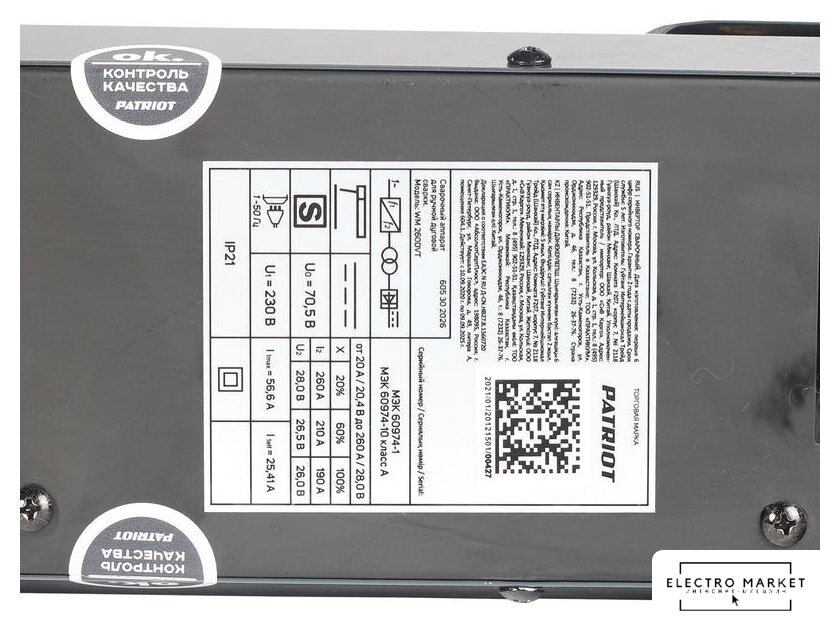 | Комплект поставки | Сварочный аппарат VRD, держатель электрода с кабелем 2.5м, сечение 16 кв. мм, клемма «земля» с кабелем 2м, сечение 16 кв. мм, инструкция по эксплуатации, гарантийный талон. |