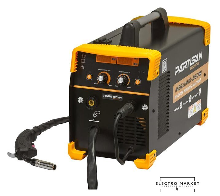 Комплект поставки | – сварочный щиток, – молоток-щетка, – горелка с рукавом 2,5 м., – кабель с держателем электрода 2,6 м., – кабель заземления 2,0 м., – сетевой кабель 2,0 м. (без вилки - приобретается отдельно) |